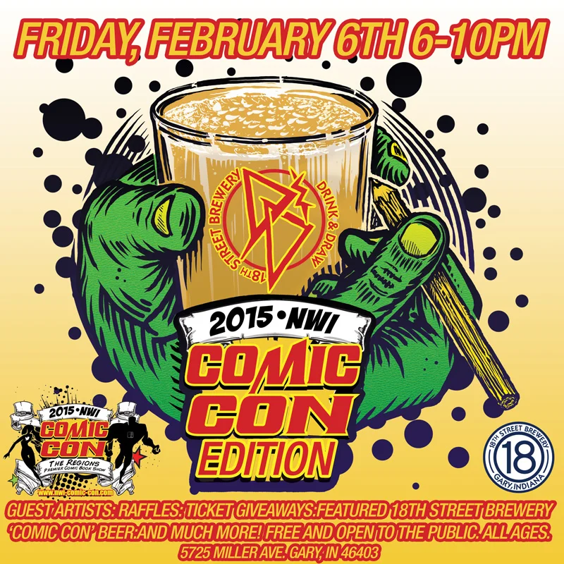 Friday, Feb 6th 6-10pm DRINK AND DRAW joins forces with The Northwest Indiana Comic Con for a night of guest artists, raffles, ticket giveaways, and a limited (available ONLY at the D&D) 18th Street Brewery ‘COMIC CON’ edition brew ! Come out, meet some of the amazing artists that will be at this years Con, enter to win limited edition prints, swag, and even free tickets to the Con! Don’t forget bring your favorite mark making materials and get creative with us!