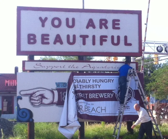 From now on, the excuse 'I couldn't find you' will no longer work. We've got fantastic new billboards, on both sides of Lake Street, with fingers POINTING AT THE BREWERY! Stop on in.