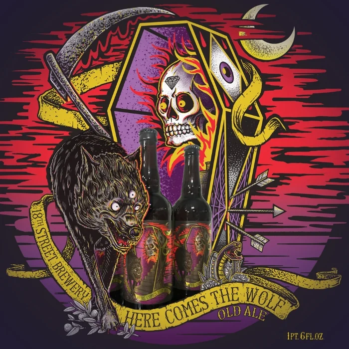 January 20, 2017 we will release HERE COMES THE WOLF, an 8.5% OLD ALE brewed with Maris Otter malt and Nugget Hops. This beer was thought up by one of our long time brewers, Bucky. It is available at both locations, $10 22oz bottles, limit one case.