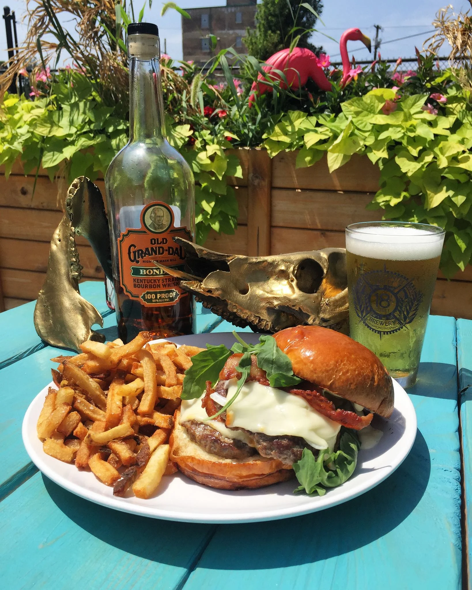 Check out our latest BBB (Beer, Burger (and fries), and Bourbon! Get our Double Burger featuring 2 4oz patties, White American cheese, shaved yellow onion, arugula, cured bacon, house bread & butter pickles and pepperocini aioli served on a brioche bun with fries. You'll get this bad boy, a shot of Old Grand-Dad Bonded Bourbon and a pint of 18th Street beer all for 16$!!! TUESDAY'S ONLY AT OUR HAMMOND BREWPUB!